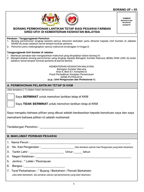 Borang UF 03 adalah satu borang penting yang perlu diisi oleh seseorang yang ingin memohon untuk menjadi ahli universiti. Dalam mengisi borang ini, terdapat beberapa butir-butir yang perlu dilengkapkan secara teliti dan tepat. Oleh itu, penting untuk memahami dengan jelas butiran-butiran yang diminta dalam borang ini supaya permohonan kita dapat diproses dengan lancar.