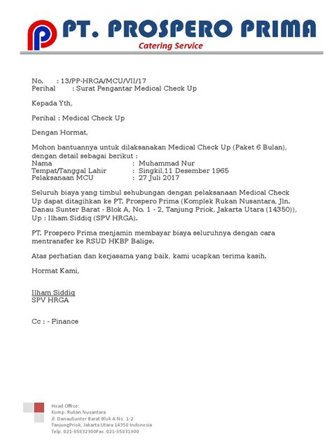 Penutup Surat Permohonan Check Up Medical