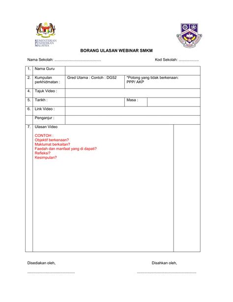 Kami berharap bahawa anda akan terus membuka diri kepada peluang-peluang pembelajaran dalam bidang akademik dan profesional. Teruskan belajar dan berkembang untuk mencapai matlamat anda. Sekiranya anda mempunyai sebarang pertanyaan atau komen mengenai Borang Ulasan Webinar Doc, jangan ragu untuk menghubungi kami melalui saluran yang disediakan. Sekali lagi, terima kasih kerana mengambil masa untuk membaca artikel ini.