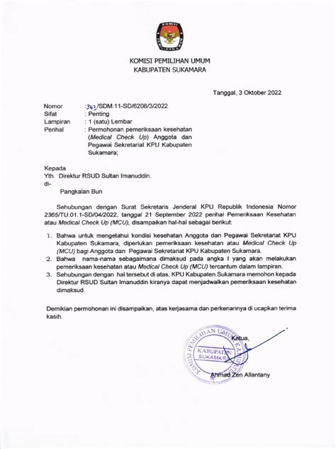 Surat Medical Check Up (MCU) adalah dokumen penting yang menunjukkan kesihatan seseorang dan mengesahkan bahawa individu tersebut sesuai untuk memegang jawatan tertentu atau melakukan sesuatu aktiviti tertentu. Surat MCU biasanya dikeluarkan oleh doktor yang melakukan pemeriksaan kesihatan penuh pesakit. Makalah ini akan membincangkan segala-galanya mengenai Surat MCU, dari definisi hingga bagaimana untuk mendapatkannya.Definisi Surat MCU