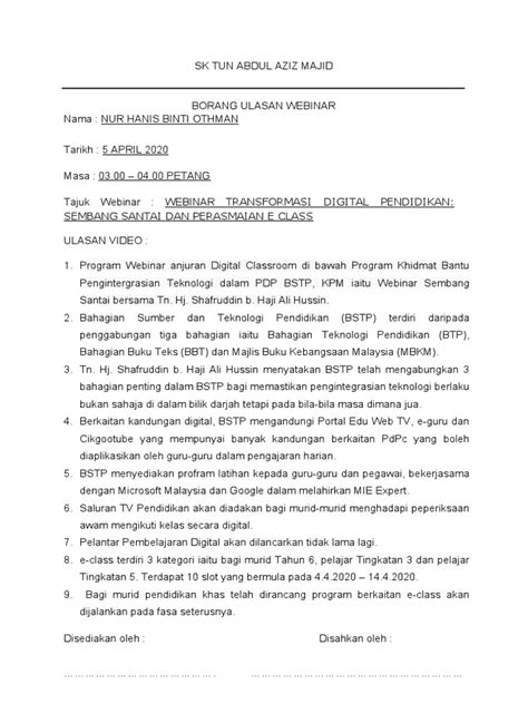 Webinar adalah cara yang semakin popular untuk berinteraksi, khususnya dalam dunia pendidikan dan perniagaan. Melalui webinar, banyak peserta boleh terlibat dalam perbincangan tanpa hadir secara fizikal. Oleh itu, ulasan webinar tanpa tajuk berikut akan membincangkan aspek penting dalam mengikuti webinar berkualiti.